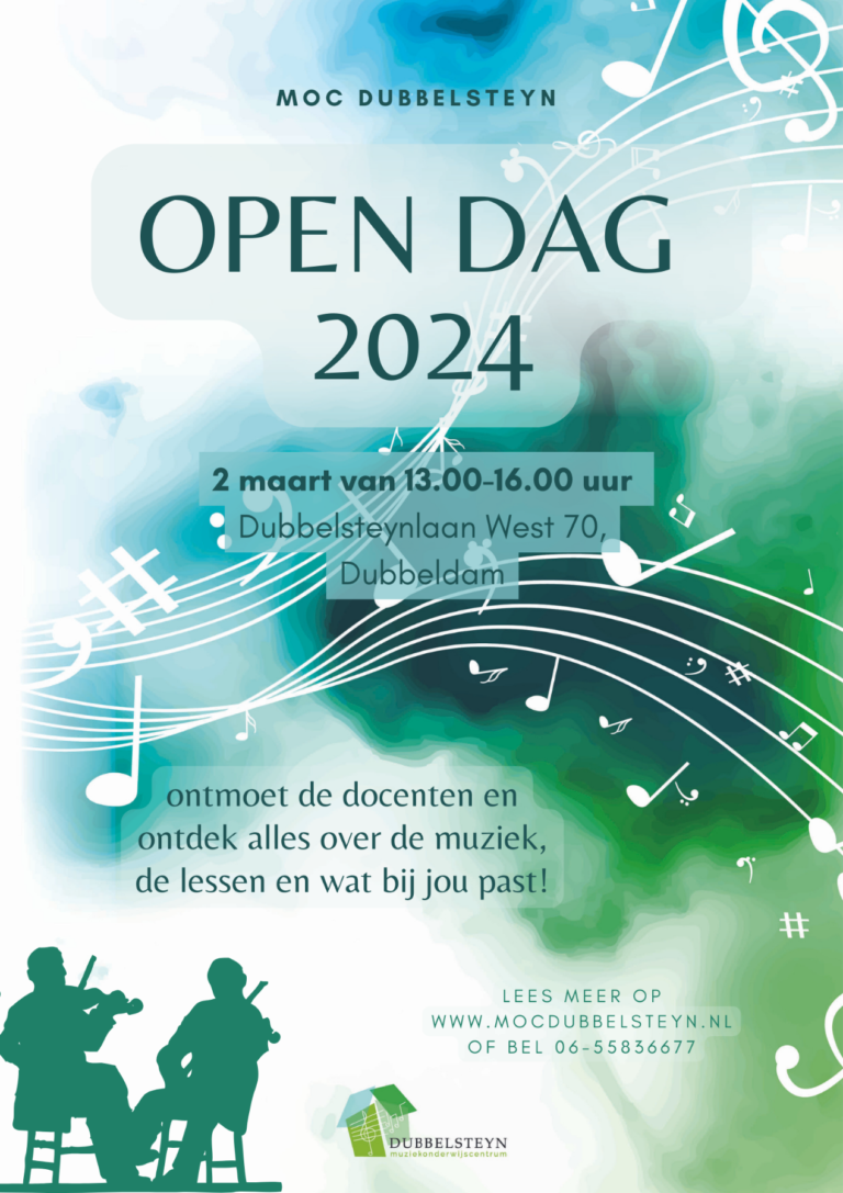 Dubbelsteyn opent de deuren op zaterdag 4 februari van 13.00-16.00 uur. Komt allen naar onze Open Dag! Onze docenten zullen er zijn voor een ontmoeting en om informatie te geven over hun instrument en de